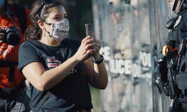 American Selfie surgió de su larga tradición de películas de viajes de campaña, una misión que ella ha descrito como «tomar la temperatura de América». La película pretende «tomar un selfie de cómo se ve Estados Unidos en 2020» durante un año en el que, como dice una tarjeta de presentación al principio, «los teléfonos inteligentes y las redes sociales cambiaron el curso de la historia de Estados Unidos». Ese cambio, concretamente en 2020, dijo Pelosi a The Guardian, es el movimiento nacional a favor de la justicia social y de Black Lives Matter (Las vidas negras importan) lanzado por las imágenes de los teléfonos móviles de la muerte de George Floyd a manos de la policía de Minneapolis en mayo. American Selfie, que recorre todo el país desde septiembre de 2019 hasta el mes pasado, llega a Minneapolis en su última mitad, pero comienza literalmente: turistas en Cloud Gate en Chicago, explicando cómo tomar el selfie ideal; colas en la esquina de la tienda de Apple en Manhattan para el lanzamiento del nuevo iPhone en septiembre de 2019, una celebración del consumismo tecnológico estadounidense justo días antes, señala la película, de una Marcha del Clima internacional.