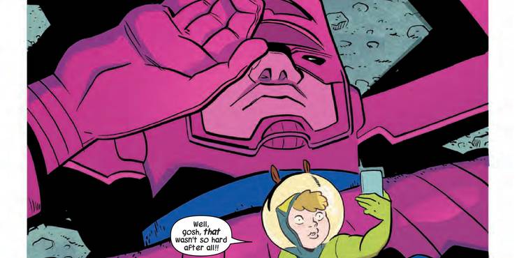 Esatto, Galactus, il mangiatore di mondi, una volta stava per scendere sulla Terra quando Squirrel Girl tentò di combattere l’essere cosmico. All’inizio, i suoi pugni non ebbero alcun effetto sull’essere più grande della vita, ma dopo essere riuscita ad avere una conversazione con lui, lo convinse a non divorare la Terra, tenendola al sicuro per il momento.