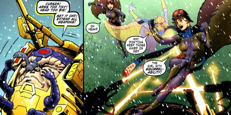 Tuttavia, quando il Vendicatore di Ferro venne attaccato dall’onnipotente villain Doctor Doom, Squirrel Girl si fece avanti. Il nemico di lunga data dei Fantastici Quattro e leader della nazione di Latveria, il Dottor Destino fu sconfitto da Squirrel Girl, che utilizzò il suo esercito di scoiattoli per aiutare a sconfiggere Destino e salvare Iron Man.